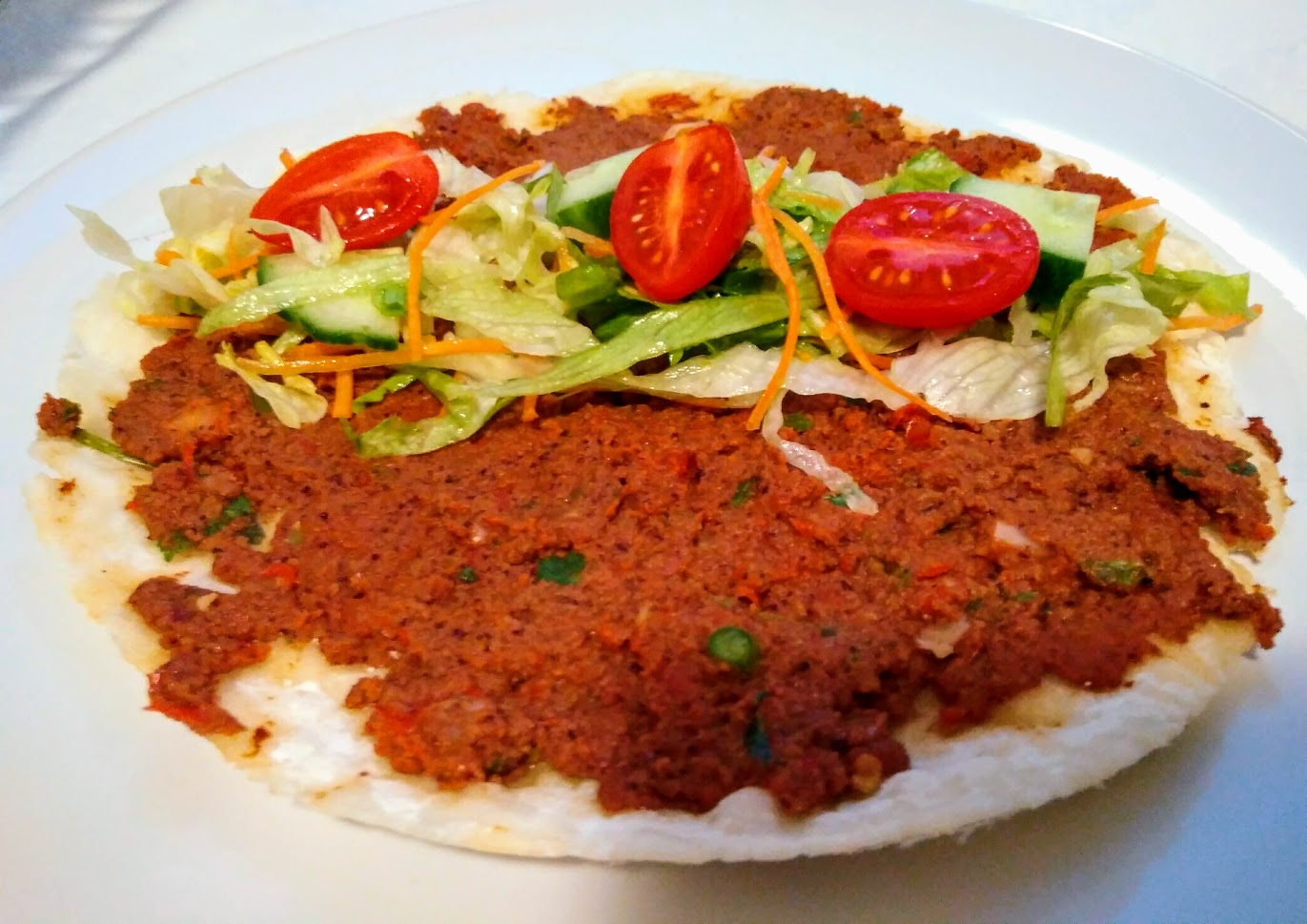 Tegenover ons huis zit een Turks winkeltje. Daar ga ik wel eens naar binnen om écht lekkere tomaten of eetrijpe avocado’s te kopen (en niet die harde knotsen die vaak in de supermarkt worden aangeprezen als ‘eetrijp’). Vaak liggen er ook een aantal versgebakken lahmacuns, ofwel Turkse pizza’s, op de toonbank. Deze zijn natuurlijk absoluut niet glutenvrij, dus besloot ik ze zelf te maken. Omdat het deze week de Nationale Week Zonder Vlees is, maak ik ze met vega gehakt van Quorn in plaats van runder- of lamsgehakt. Het was de eerste keer dat ik ooit lahmacun probeerde te maken, maar gelukkig kwam ik dit recept tegen op de Nederlands-Turkse foodblog van Eslem. Deze heb ik dus wel aangepast tot een glutenvrij en vegetarisch recept. Het uitrollen van het glutenvrije deeg was soms wat lastig. Ik kreeg de lahmacuns dan ook niet zo dun als ik hoopte. De smaak was echter prima, en de Turkse pizza’s waren zacht genoeg om goed op te rollen. Echt weer eens wat anders, en nu weet ik ook eindelijk hoe een Turkse lahmacun smaakt.